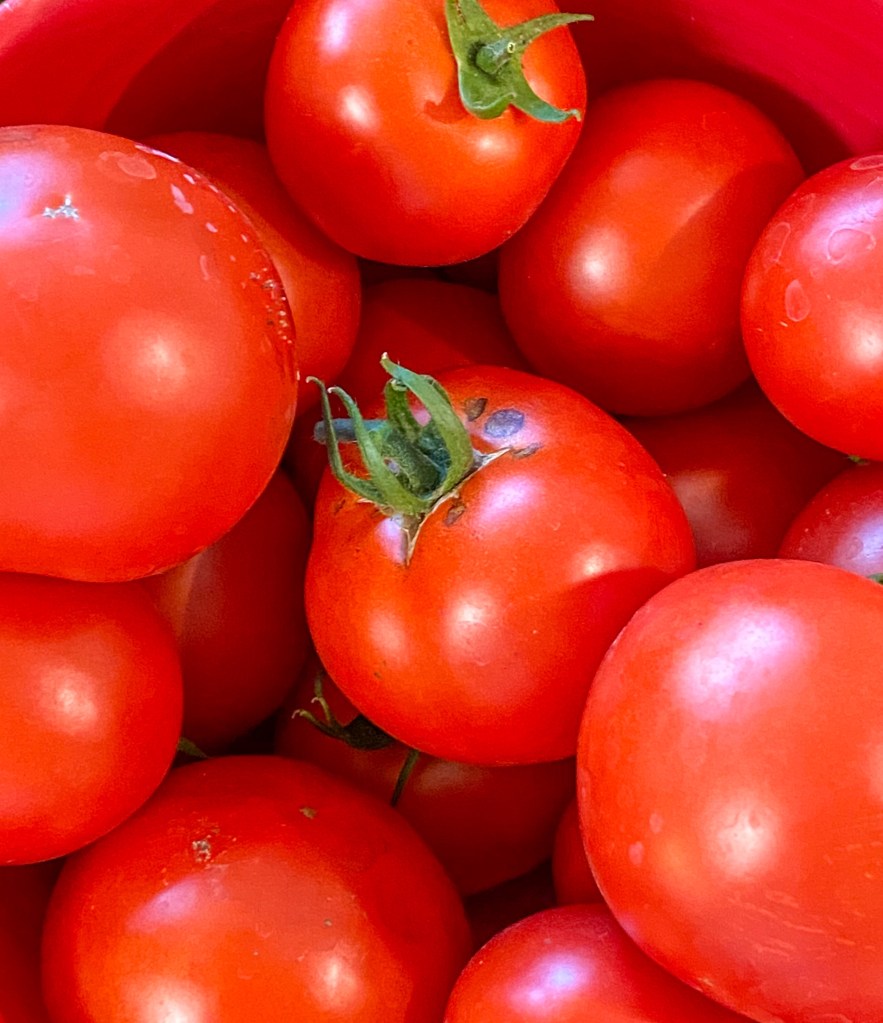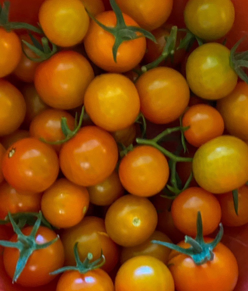 Denne gangen har vi også med oss flere typer tomater, squash, sukkererter, bønner og agurker. I tillegg til Hovden poteter.