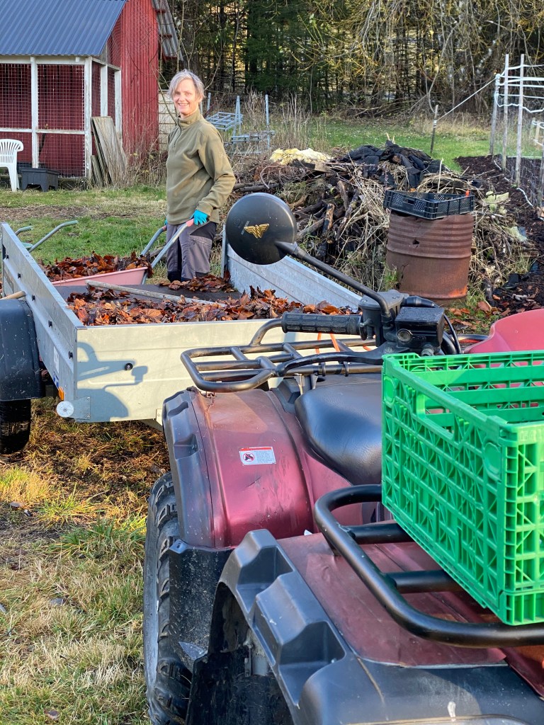 Og gjøremål er det nok av. Jorda skal forberedes til en ny grønnsakssesong. Papp, gammelt gress og løv dekker overflatene og skal forbedre jordsmonnet.