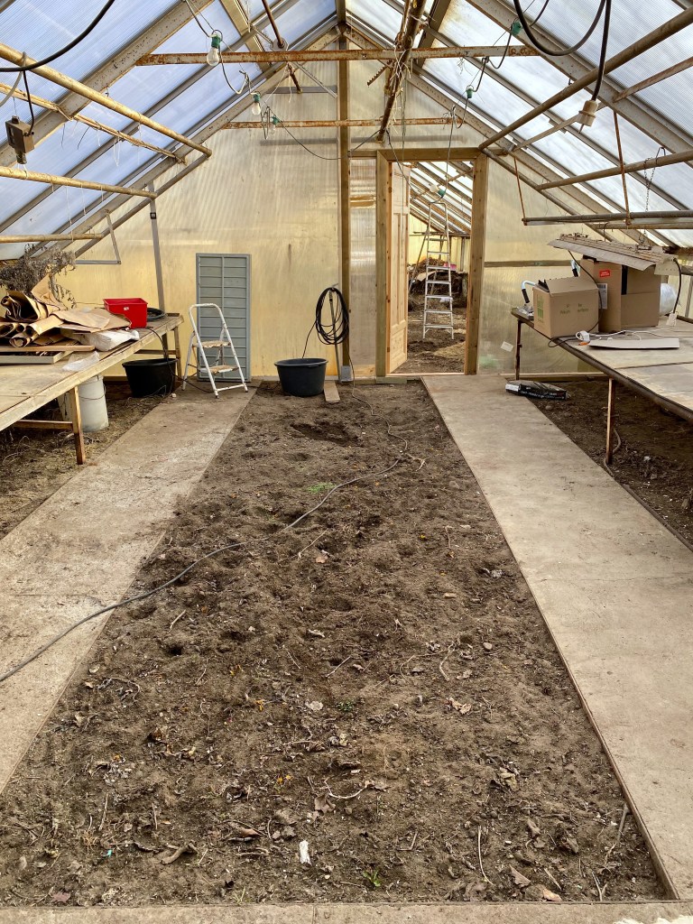 Endelig var vi klare til å ta i bruk oppalsdelen i veksthuset. I løpet av vinteren har vi satt inn nye dører, bygget opp igjen skillevegger og fått rommet tålig tett.
