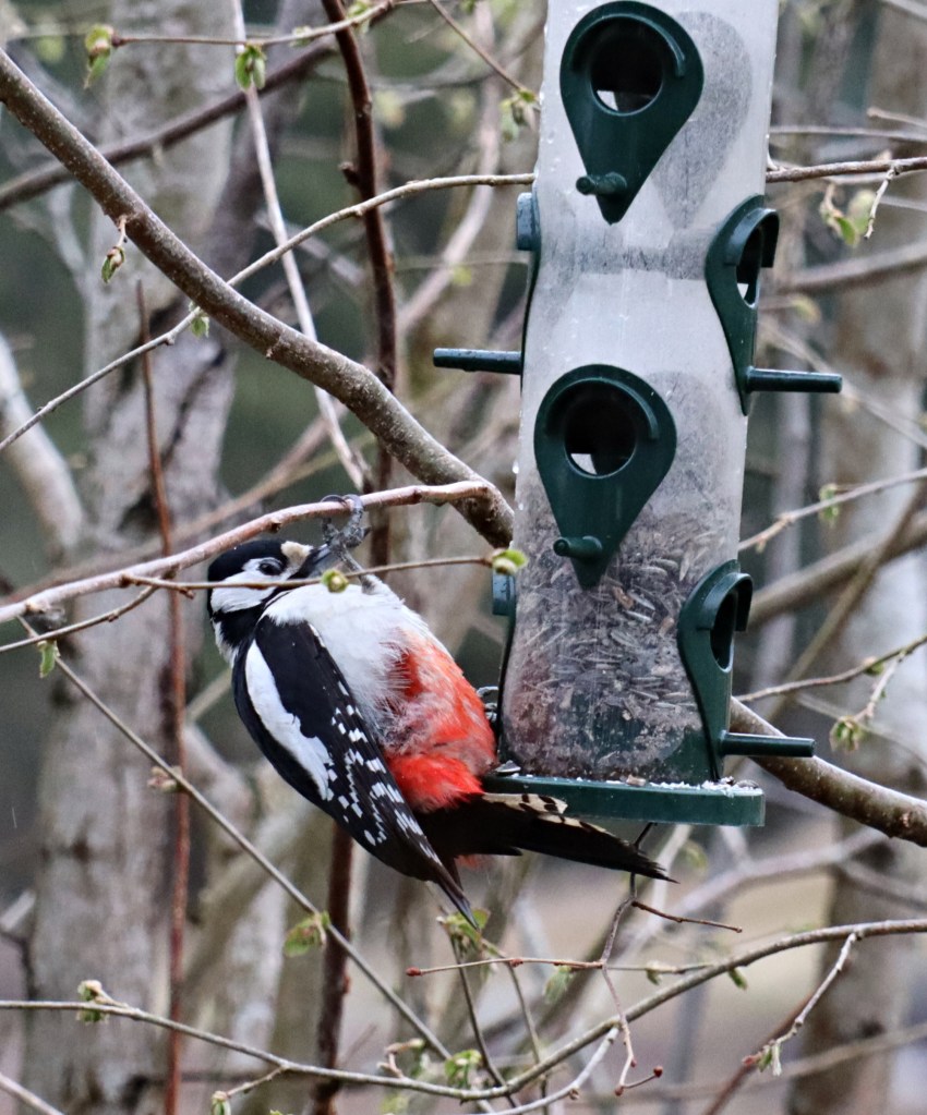 I det siste har flaggspetten også blitt en hyppig gjest. Her er en liten bildeserie….: