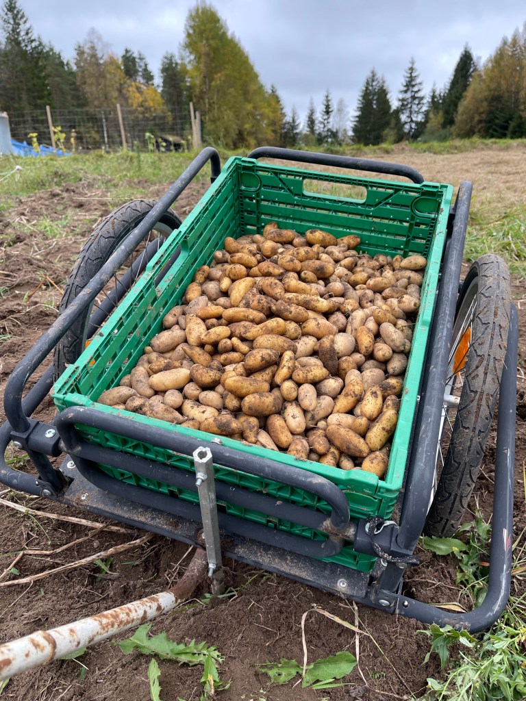 Sesongen er nå på hell. Vi har fortsatt noen mandelpoteter som skal opp av jorda samt noe tomater, mangol og paprika/chili som ikke er høstet. Vi kan også tilby andre grønnsaker som vi har på kjølelager.