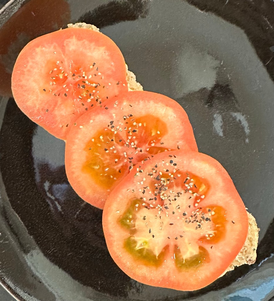 Skjær de i skiver, legg de på en skive hjemmebakt surdeig brød og dryss på litt pepper.