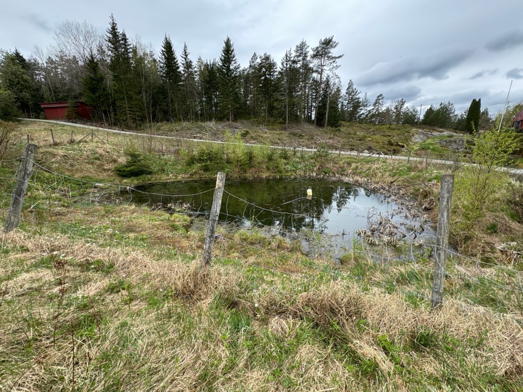 Borehullet som forsyner bolighuset med vann har begrenset kapasitet. Derfor er vi avhengig av Ä hente vann i gÄrdsdammen til vanning i veksthuset og pÄ friland.