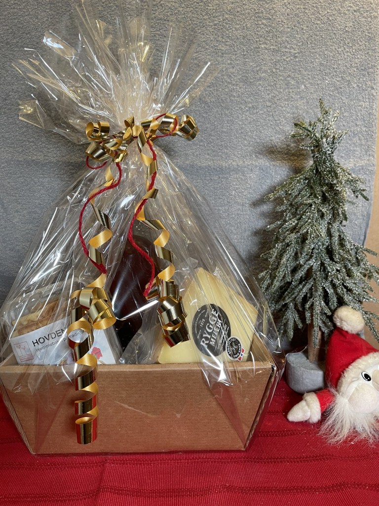 Tradisjonen tro setter vi sammen gavepakker med egne og andre lokalprodusenters varer før jul.