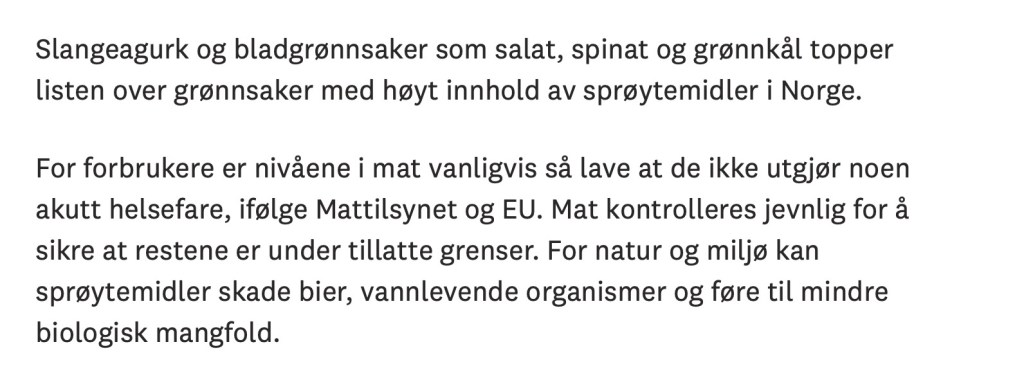 Visste du at slangeagurk og grønnkål er blant de grønnsakene som sprøytes mest i Norge?